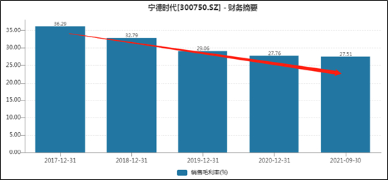 据悉,中国70%的汽车价格在15万人民币/台以下,而市场上主流的新能源车普遍都在20万以上。如果新能车要实现对传统油气车的取代,成本无疑是关键要素。相关业内人士指出,在新能源汽车的成本结构中,有46%的成本与燃油车相同,这部分成本下降空间微乎其微,而占比高达38%的电池成本,被认为还存在优化空间。这意味着,在行业降本诉求下,卡位电池端的利润空间,长期一定会受下游主机厂挤压。宁德时代逐年下降的毛利率也间接验证了这一趋势。