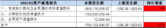 2021年上半年,公司资产减值准备计提产生的损失金额为7.54亿元,较上年同期增速高达123%。具体明细看,最主要为公司存货跌价计提,计提损失金额高达6.04亿元,较上年同期增速高达79%。