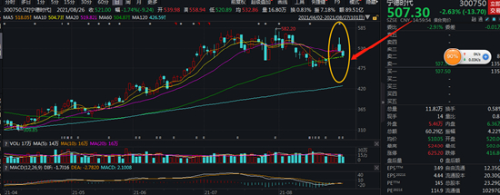 我们先看事实,宁德去年半年报尽管业绩爆表,但是二级市场盘面似乎并不买账,公告后盘面股价出现两条“阴线”!