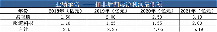 面对高溢价收购,这2家子公司原股东也做出业绩承诺,易视腾及邦道科技原股东承诺,若因项目交割迟于2018年12月31日,需要延长业绩承诺至2021年。