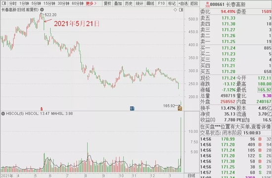 长春高新这个票跌得有点惨,盘中一度跌停,收盘还是大跌7.12%。