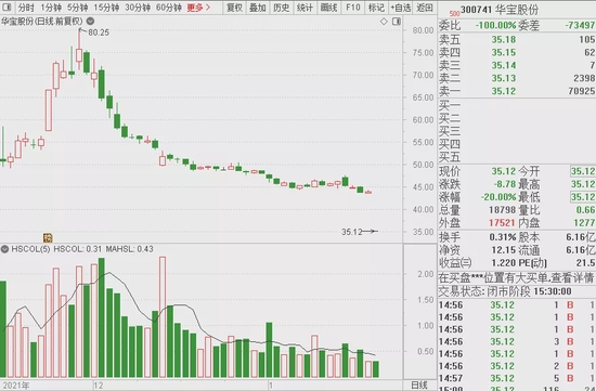 华宝国际早盘4分钟一度闪崩70%,收盘下跌66%。