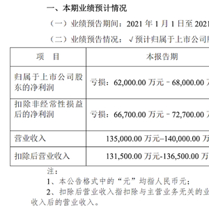 1月23日,红相股份(300427.SZ)披露2021年度业绩预告,预计2021年度实现归属于上市公司股东的净利润为亏损6.20亿元到6.80亿元。
