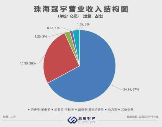 目前,珠海冠宇仍以笔记本电脑类消费电子作为主要营收来源。根据2021年半年报,珠海冠宇“消费类-笔电类”业务的营业收入34.14亿元,占比67.13%,“消费类-手机类”业务营业收入13.3亿元,占比26.15%。并且从往年营业收入结构看,“消费类-笔电类”的营业收入占比逐年增加,“消费类-手机类”的营业收入占比逐年下降。