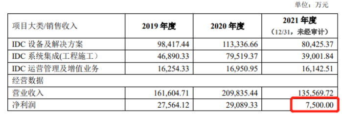 承诺期满,香江科技的业绩便开始“未达预期”。数据显示,香江科技净利润由2020年的2.91亿元直线下降至2021年的7500万元。下滑的主要原因为承接的汇天、南法信等客户项目应收工程款项未能在2021年12月31日前回款,计提坏账准备约7000万元;承接的广州量光一期、上海云佰及数字扬中项目因甲方原因延期开工,对利润的影响约8000万元;原材料涨价约5500万元。此外,公司自建自营数据中心业务项目进度也不及预期,管理费用支出也影响了当期利润。