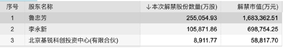 下周解禁市值规模排名第二的中公教育,即将面临244.09亿元的大额解禁。本次解禁的股东为鲁忠芳、李永新、基锐科创。