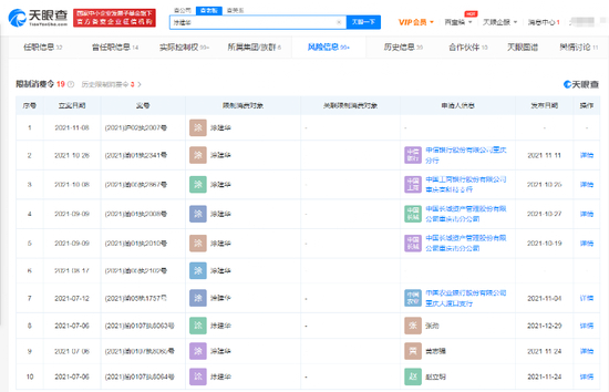 天眼查显示,截至目前,涂建华身份为被告/被上诉人的涉案总金额达14.68亿元、此外在终本案件中未履行总金额达11.27亿元,未履行比例达94.9%。涂建华也因此多次被列为失信被执行人并被下发限制消费令。