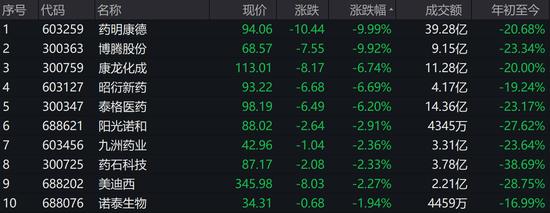 A股方面,药明康德(603259.SH)开盘一字跌停,博腾股份(300363.SZ)跌逾9%,康龙化成(300759.SZ)、昭衍新药(603127.SH)、泰格医药(300347.SZ)等跌逾6%。