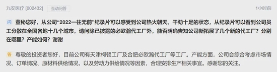 次日,公司董秘在互动易称,产能方面,公司会综合考虑市场情况、订单情况、原材料供给情况,以及劳动力供给情况等因素,合理安排生产相关事宜。
