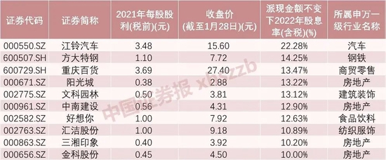 2022年预期股息率前十的A股上市公司