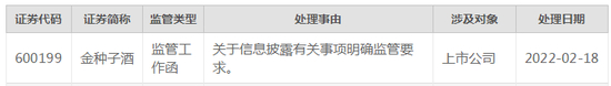 2月18日,上交所下发监管工作函,处理事由为关于信息披露有关事项明确监管要求。
