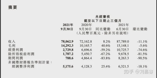 2021年11月23日,小米公司公布三季报。第三季度营业收入780亿元,同比增长8.2%,环比降低11%;国际财务报告准则利润7.9亿元,同比下降84%;非国际财务报告准则(经调整)利润51.756亿元,同比增长25.4%。国际会计准则下利润下降是指小米对外投资的上市公司(主要是投资收益部分被爱奇艺的股价下跌给亏去)在三季度股市下跌产生公允价值变动,即股票浮亏的影响。