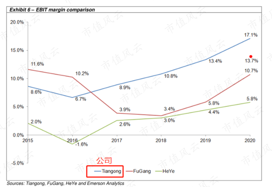 2020年,公司的EBIT利润率比抚顺特钢高出6.4个百分点,比河冶科技高出11.3个百分点。