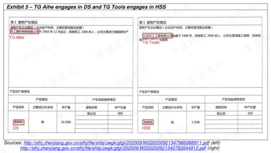 然而,环保部门文件显示,天工爱和主要进行模具钢生产,天工工具主要进行高速钢生产。