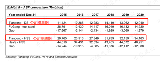 多数年份,公司模具钢的平均价格比抚顺特钢低约2000元/吨;其高速钢的平均价格比河冶科技低1.2万元/吨。