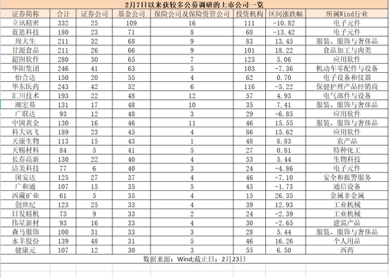 Wind数据显示,2月7日以来合计274家公司接受了公募基金的调研。