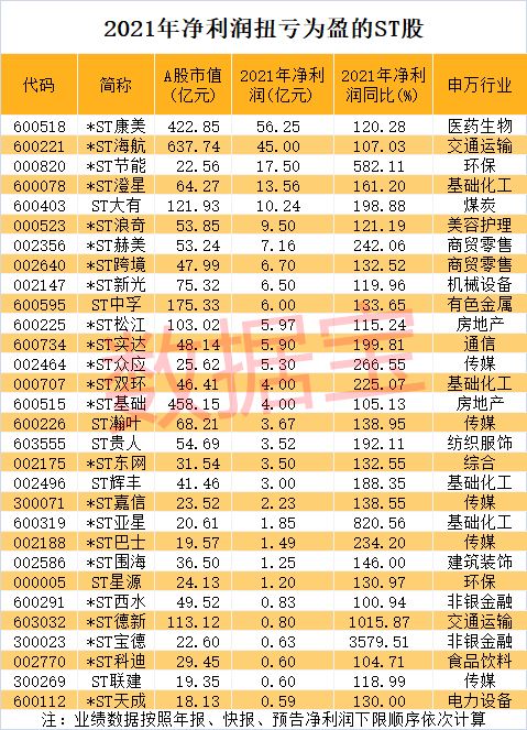52只ST股2021年净利润有望扭亏为盈。