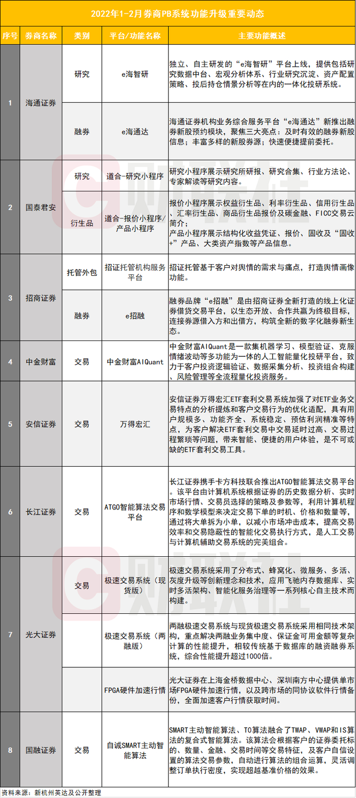 券商技术升级战:今年以来至少8家券商有动作,PB业务注重深耕细分领域,融券平台建设成又一重工地带