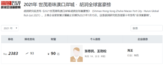 2017年开始,海王集团连续进入中国企业500强,2021年,海王集团位列中国企业500强第324位、2021中国民营企业500强第144位。2021年胡润全球富豪榜显示,张思民、王劲松夫妇以90亿身价位于2383名,较前一年上升93名。(北京时间财经 陈世爱)