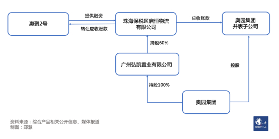 理由如下:公开信息显示,惠聚2号主要用于“折价受让供应商持有的对奥园集团并表公司的应收账款债权”,由奥园集团提供连带责任保证担保。惠聚2号由珠海保税区启恒物流有限公司举借,而奥园旗下的广州弘凯置业有限公司,持有启恒物流60%股权,也就是说,启恒物流实际上也是由奥园控股的公司。
