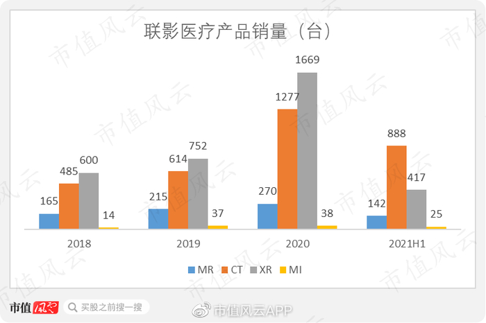 按新增销售台数统计,2020年,联影医疗是国内最大的CT、MR和MI设备生产商。