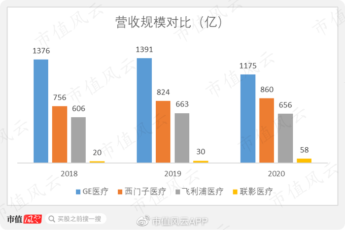 而联影医疗的营收规模,和三巨头相比,也只能算得上是零头。