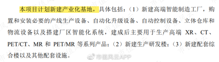 另外,联影医疗还拟将31.26亿资金,用于高端医疗影像设备产业化基地项目,主要是新建高端智能制造工厂、生产研发楼、配套综合楼等。