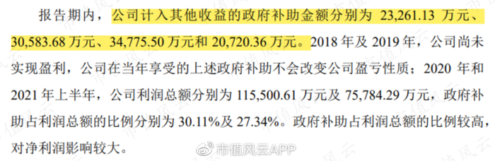 2018年、2019年,公司的归母净利润分别为-1.26亿、-0.74亿,而扣非净利润则要更低,主要原因是每期都会有2-3亿的政府补助计入其他收益。