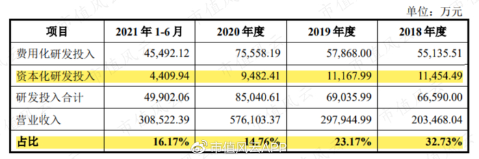 2020年,公司共产生研发投入8.5亿,其中有近1亿研发投入进行了资本化,合计占当年总营收的14.76%。
