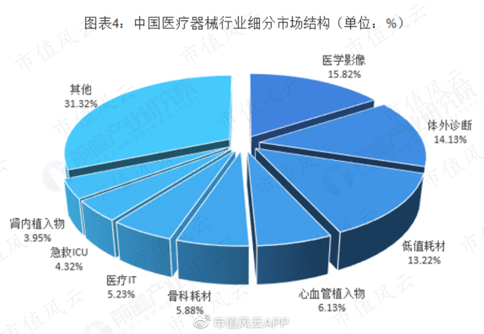 2018年,医学影像行业在我国医疗器械市场结构中占比15.82%,排名第一。同时,医学影像设备也是医疗器械行业中,技术壁垒最高的细分市场。