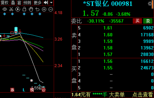 5跌停后,*ST银亿(000981.SZ)止步了跌停,3月4日收盘时跌3.68%,最新股价收于1.57元。6个交易日,*ST银亿累计跌幅达55%,股价已腰斩。