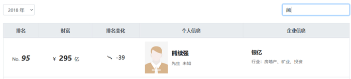 2018年,胡润的百富榜上,熊续强以295亿的财富排在95位。这一年,他也多了一个称谓,“宁波首富”。