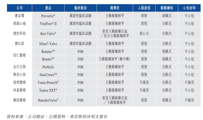 根据“弗若斯特沙利文”的资料,以下为在中国用于临床试验阶段的相关TAVR产品: