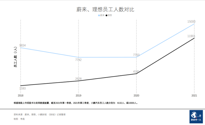招股书显示,截至2021年9月30日,蔚来的未偿还长期借款总额达到了98.266亿元,同时在过去一年里,蔚来的员工人数规模几乎翻了一番。