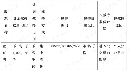 随后,持有8.6%股份比例的第二大股东童贞明也抛出减持计划,拟减持不高于1%。