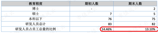 研发人员占比大概在14%左右,2020年底还有2名硕士升为博士了。