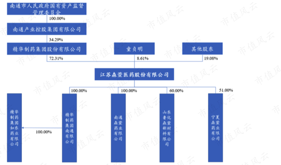 截至最新2021中报,森萱医药第一大股东为精华制药(002349.SZ),持有72.31%股权,而精华制药控股股东是江苏省南通市国资委。