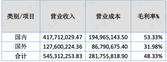 森萱医药国外收入大概在20%左右,不过国内的毛利率比国外高很多,国内有53.33%,国外只有31.98%。
