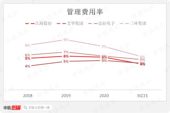 可以看出,三环集团表现最好,销售费用率仅有1%,而艾华集团表现最差,高达4%。