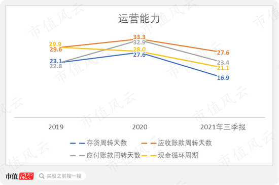 力勤作为贸易商的实力也可以从其运营指标看得出来。去年前三季度,存货周转天数16.9天,且趋势向下,应收账款周转天数也在30天左右。