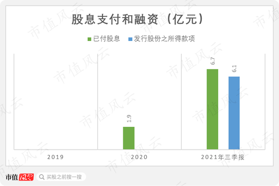 2021年,公司在现金流紧张的情况下分红6.7亿元,然后又股权融资6.1亿。