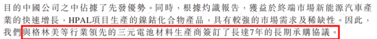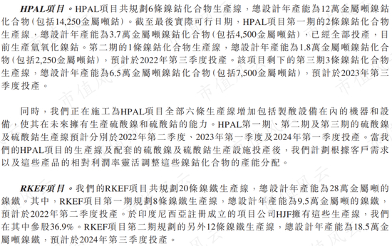 镍钴化合物的生产从去年6月开始,由公司位于印尼的子公司HPL进行,负责HPAL项目一期和二期的运营,HPAL指的是一种冶炼工艺。