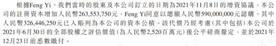 去年11月,力勤引入了一个股东:Feng Yi,Feng Yi正是HPL曾经的大股东。而Feng Yi以5.9亿元的代价获取了力勤增资后的20%股权。