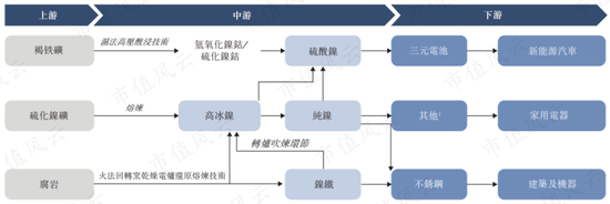 镍产业链的中游即冶炼环节,产品包括镍铁、镍钴化合物、高冰镍等。
