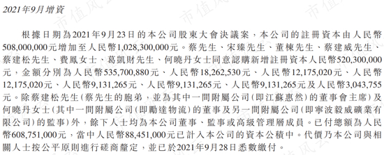 从分红和募资的先后顺序来看,2021年的分红部分是为了给蔡建勇钱以参与9月份的增资,这次增资引入了蔡建勇的胞弟蔡建松、附属公司董事何晓丹以及多名公司董事、监事和管理层人员。