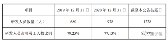 本次公告中还披露了寒武纪研发人员的最新总体情况,研发人员数量保持增长,研发人员占比也一直在高位。