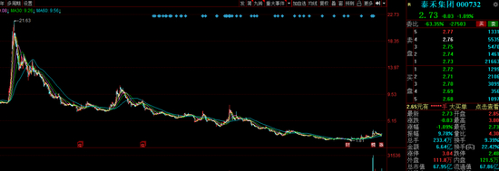 3月17日收盘,地产股普遍上涨的情况下,泰禾集团跌1.09%,报2.73元,总市值67.95亿元。2022年以来,泰禾集团涨幅24%,但相比2018年初的21.63元高点,跌幅最高达87%。