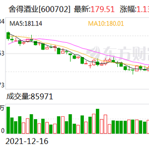 截至3月17日,舍得酒业(600702.SH)收涨1.13%,报收179.51元。