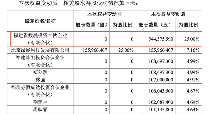 本次权益变动前,兴创电子拥有公司表决权的股份数量为7184.13万股,占公司总股本的11.54%,郑州航空港经济综合实验区管理委员会间接持有兴创电子100%股权。本次权益变动后,福建数晟直接持有实达集团5.45亿股股份,占总股本25%,成为*ST实达的第一大股东。