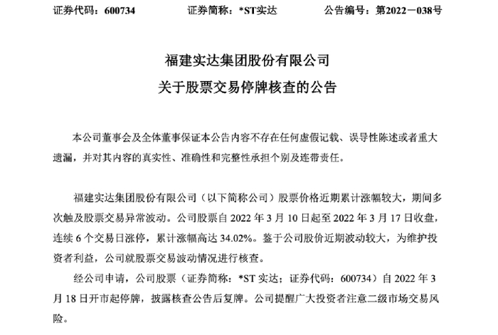 21连板*ST实达停牌核查